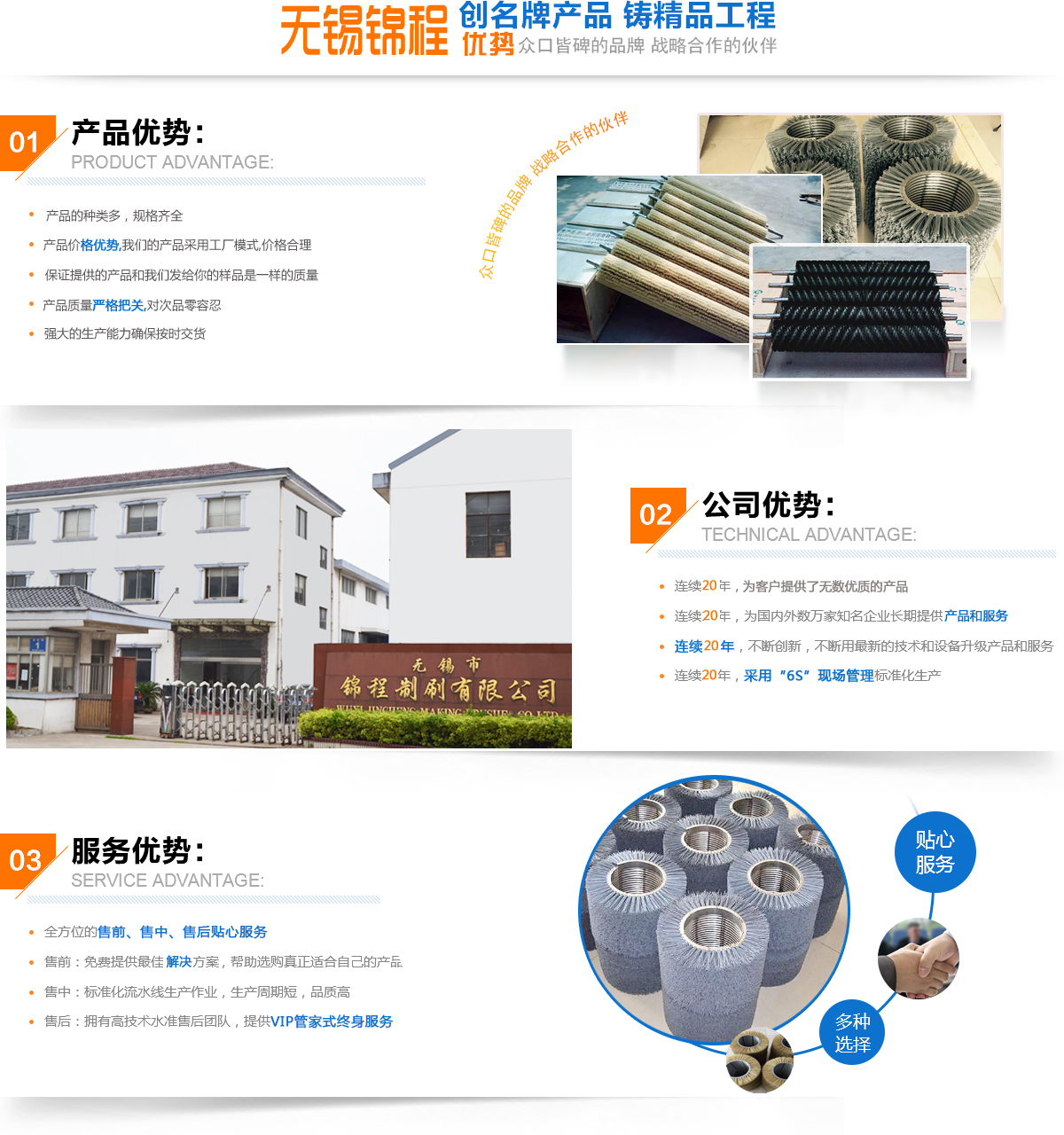 無錫市錦程制刷有限公司,創(chuàng)辦于1995年。位于無錫市惠山區(qū)堰橋工業(yè)園區(qū),是一家有著多年生產(chǎn)經(jīng)驗(yàn)和技術(shù)的廠家,專業(yè)從事設(shè)計(jì)制造各種材質(zhì)和規(guī)格的毛刷輥、開幅輥、磨料絲刷、圓盤刷、清洗刷、條刷和鋼絲刷等。品主要用于紡織、印染、皮革、薄膜的整理和除皺;管道的清洗;鋼鐵行業(yè)除銹、去毛刺;食品的加工和水果的清洗等。我廠引進(jìn)進(jìn)口的制刷專用設(shè)備,為您提供全系列的工業(yè)刷產(chǎn)品。